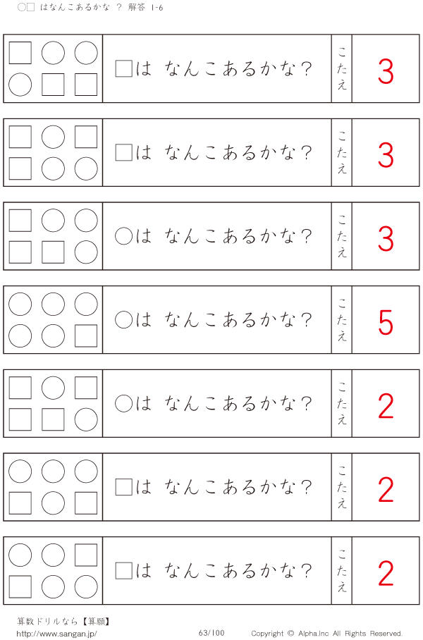 ○□はなんこかな?1-6-[プリント一覧] [解答]063/100