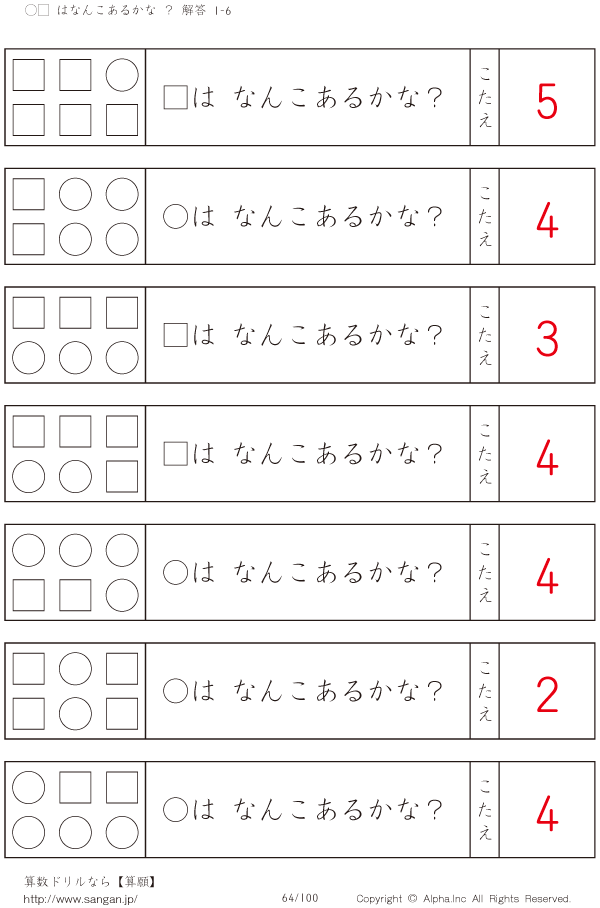 ○□はなんこかな?1-6-[プリント一覧] [解答]064/100