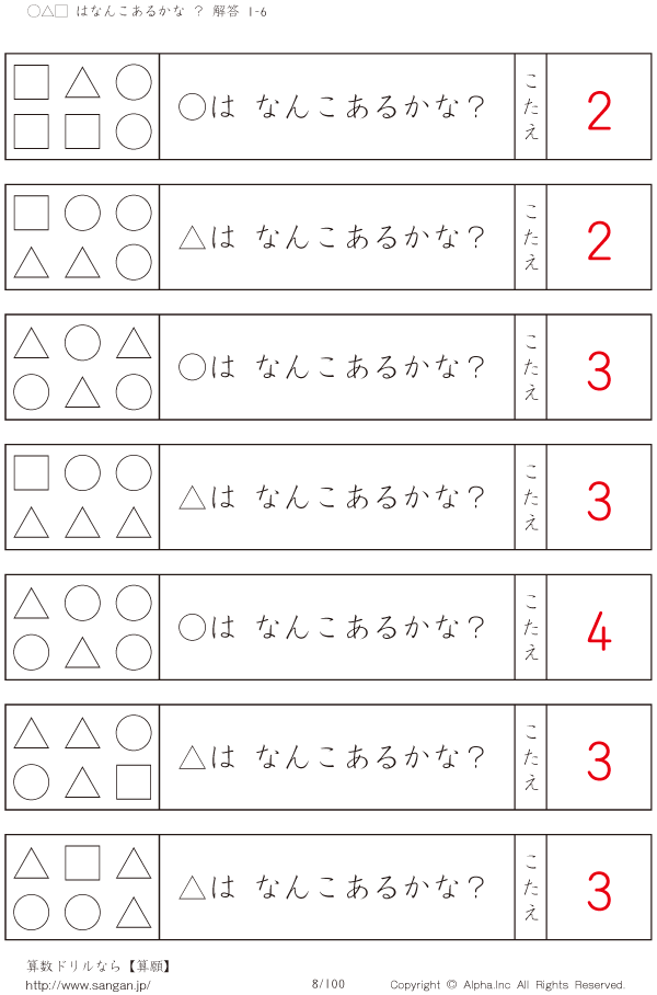 ○△□はなんこかな?1-6-[プリント一覧] [解答]008/100