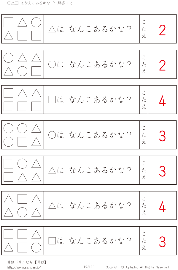 ○△□はなんこかな?1-6-[プリント一覧] [解答]019/100