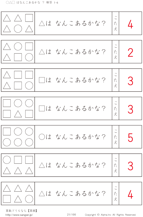 ○△□はなんこかな?1-6-[プリント一覧] [解答]021/100