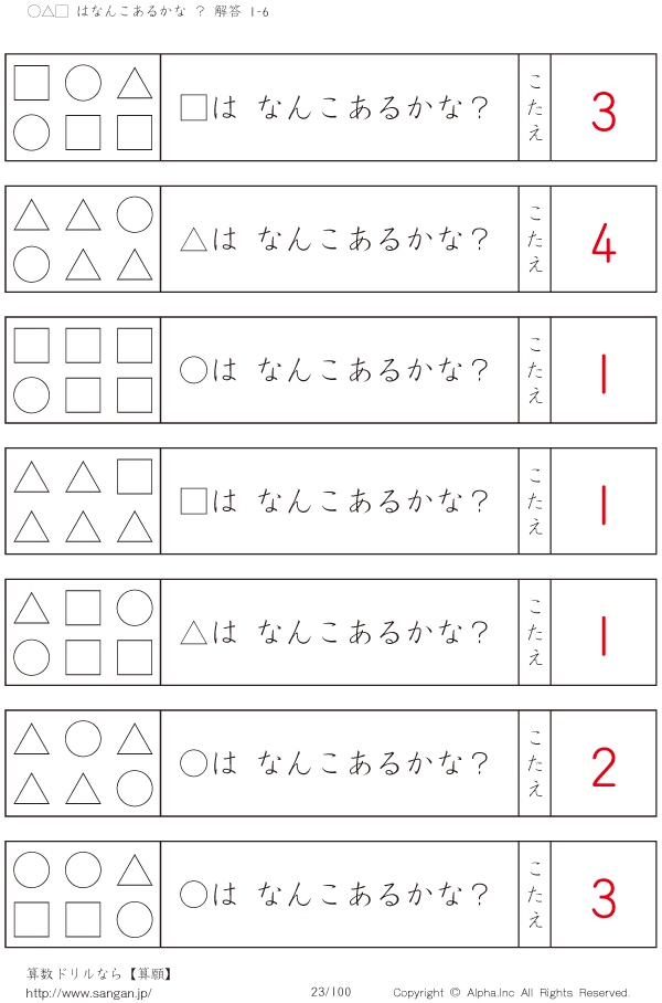 ○△□はなんこかな?1-6-[プリント一覧] [解答]023/100