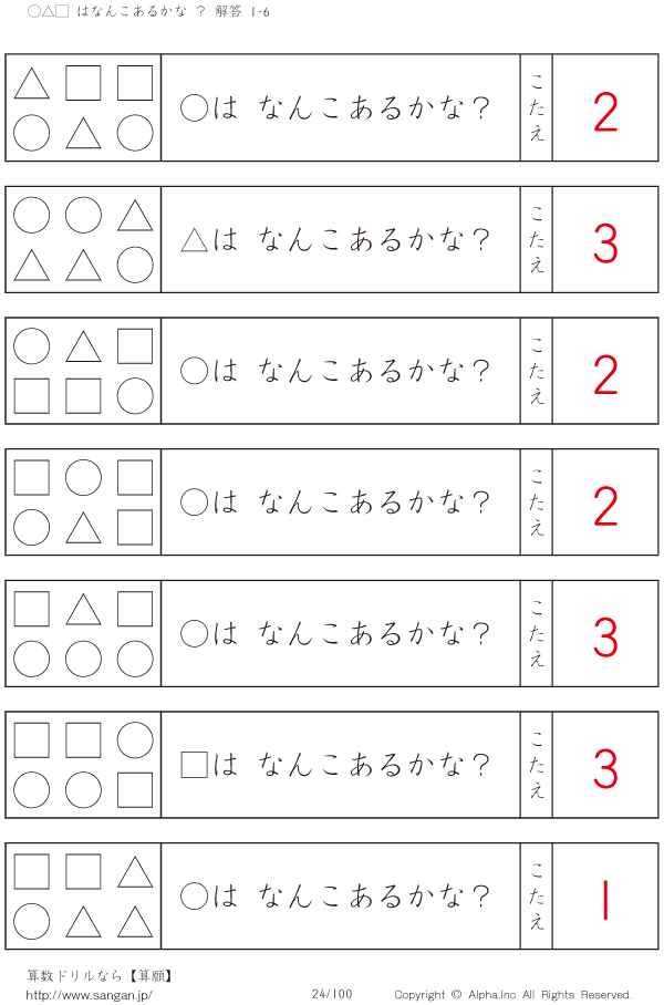 ○△□はなんこかな?1-6-[プリント一覧] [解答]024/100