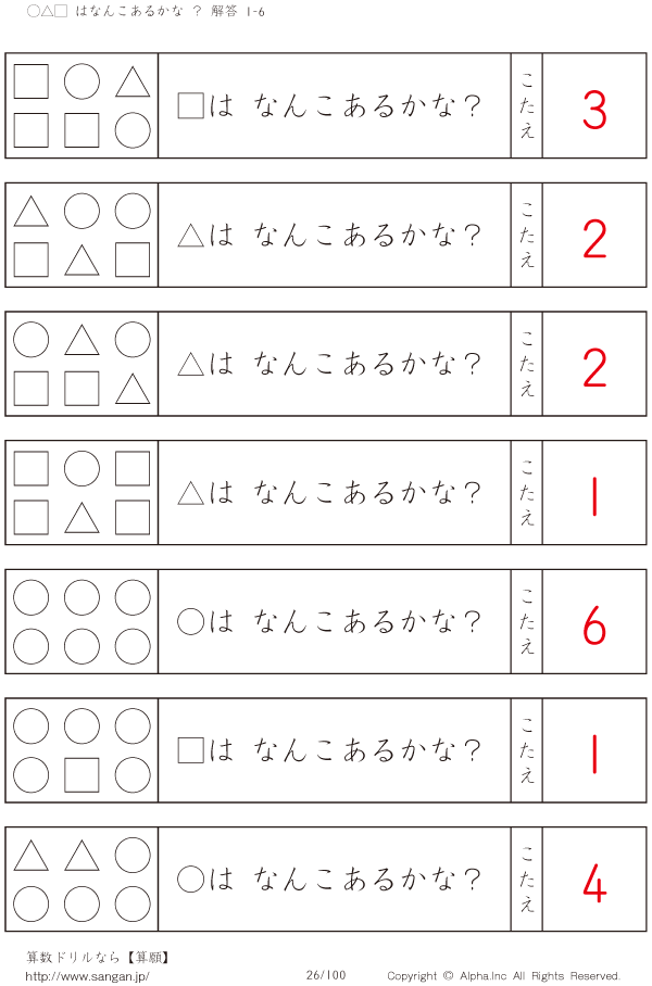 ○△□はなんこかな?1-6-[プリント一覧] [解答]026/100