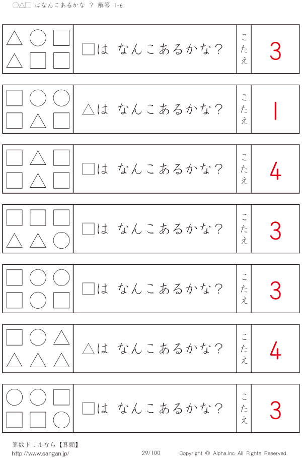 ○△□はなんこかな?1-6-[プリント一覧] [解答]029/100