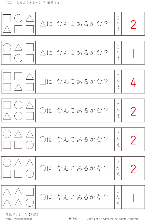 ○△□はなんこかな?1-6-[プリント一覧] [解答]036/100