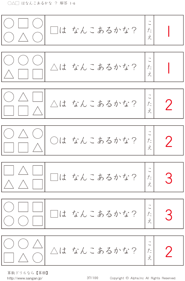 ○△□はなんこかな?1-6-[プリント一覧] [解答]037/100