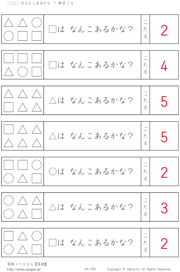 ○△□はなんこかな?1-6-[プリント一覧] [解答]044/100