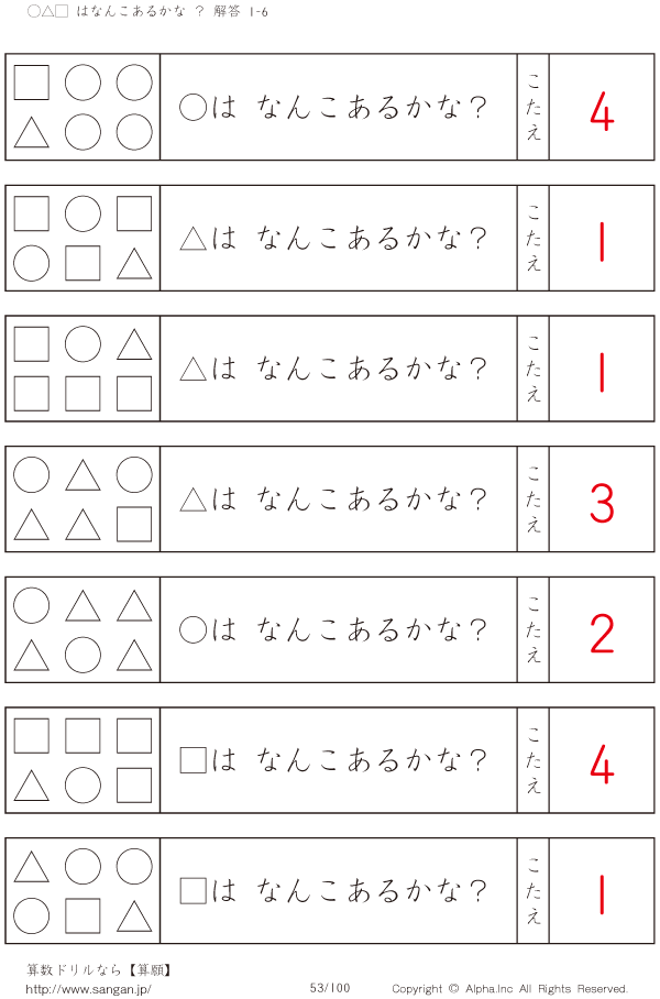 ○△□はなんこかな?1-6-[プリント一覧] [解答]053/100