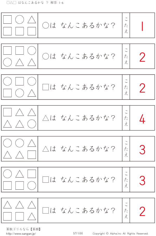 ○△□はなんこかな?1-6-[プリント一覧] [解答]057/100