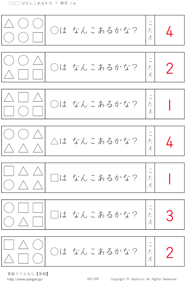 ○△□はなんこかな?1-6-[プリント一覧] [解答]065/100