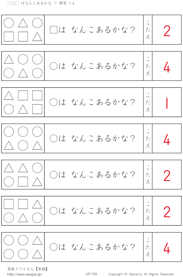 ○△□はなんこかな?1-6-[プリント一覧] [解答]069/100
