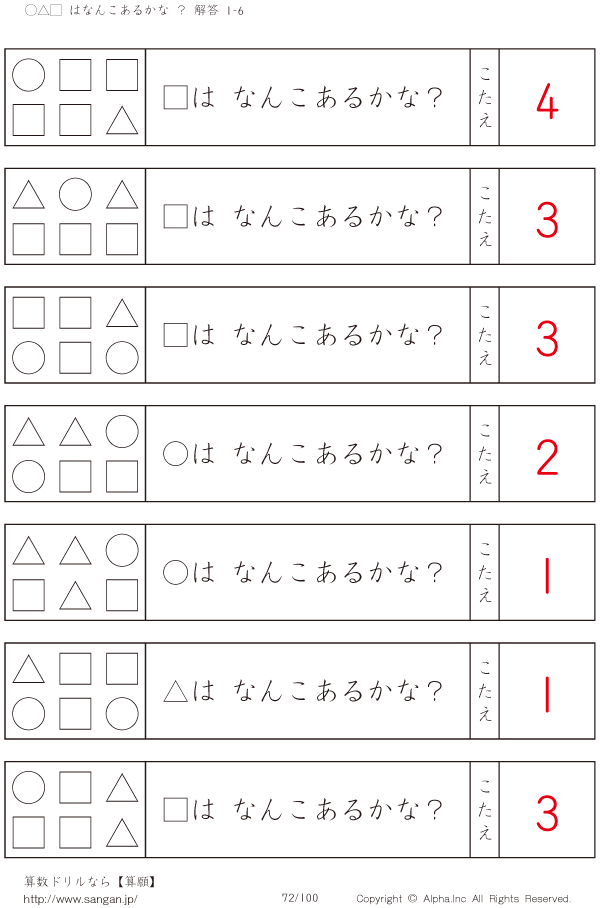 ○△□はなんこかな?1-6-[プリント一覧] [解答]072/100