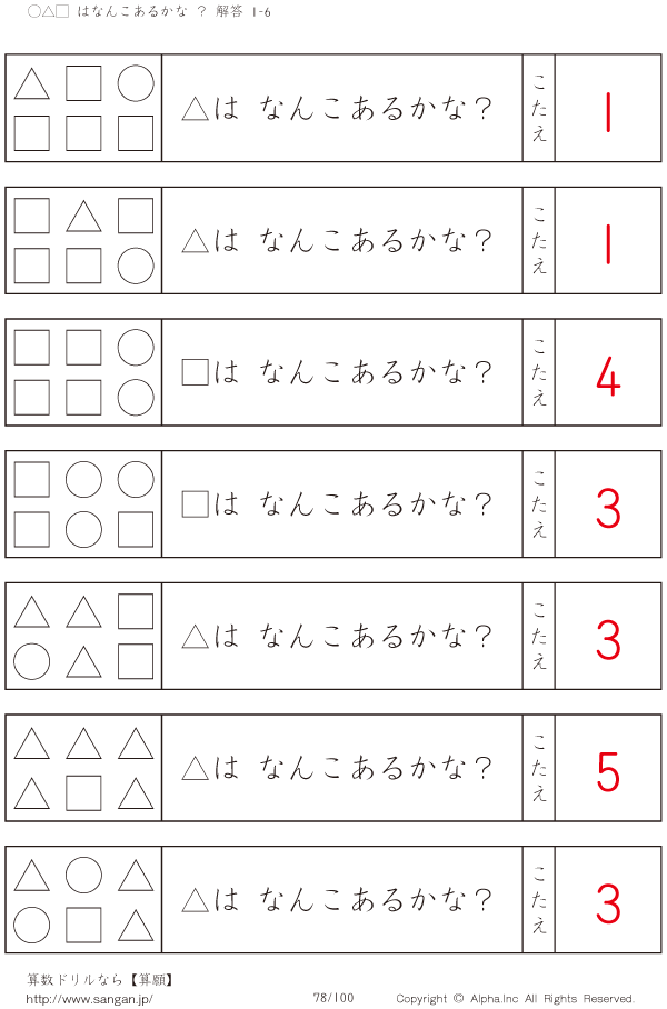 ○△□はなんこかな?1-6-[プリント一覧] [解答]078/100