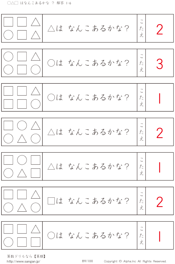 ○△□はなんこかな?1-6-[プリント一覧] [解答]089/100