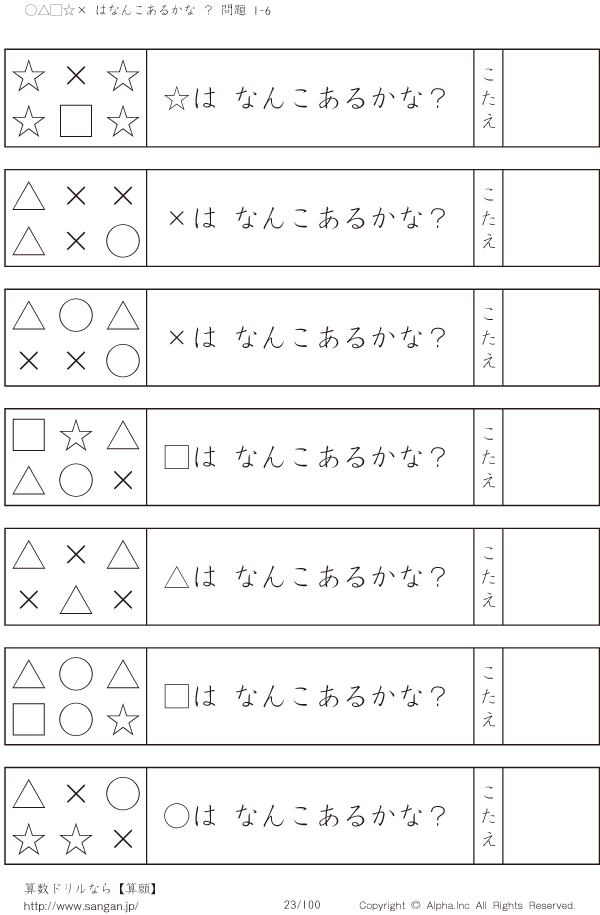 ○△□×☆はなんこかな?1-6-[プリント一覧] [問題]023/100