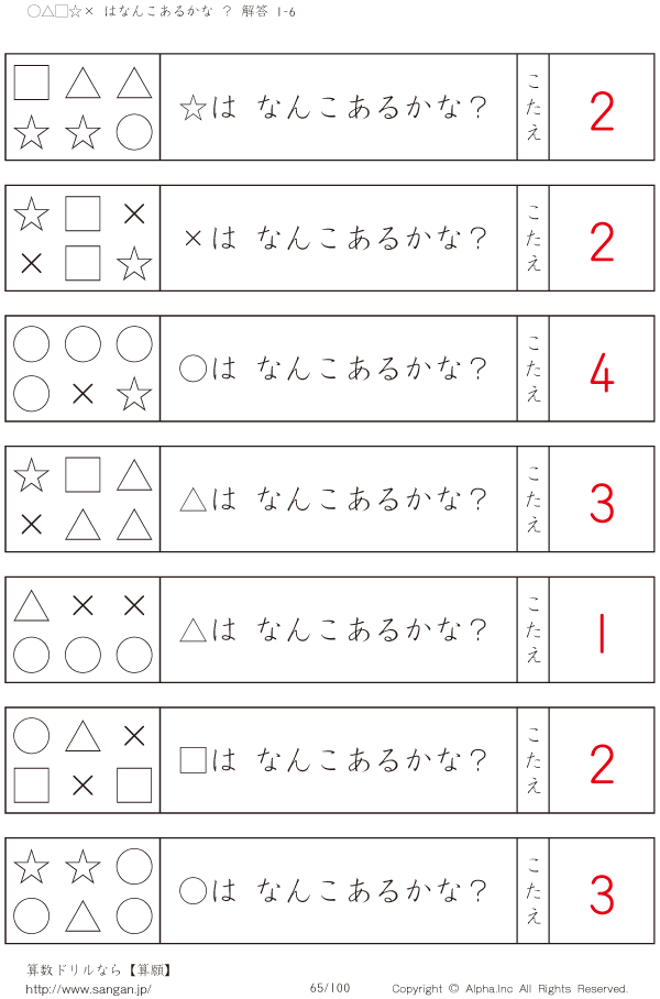○△□×☆はなんこかな?1-6-[プリント一覧] [解答]065/100