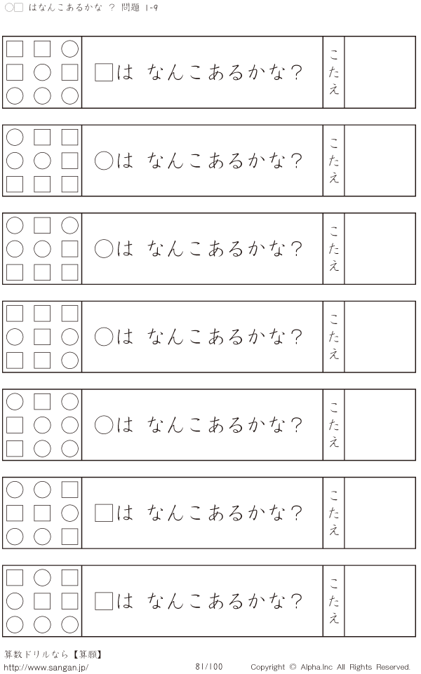 ○□はなんこかな?1-9-[プリント一覧] [問題]081/100