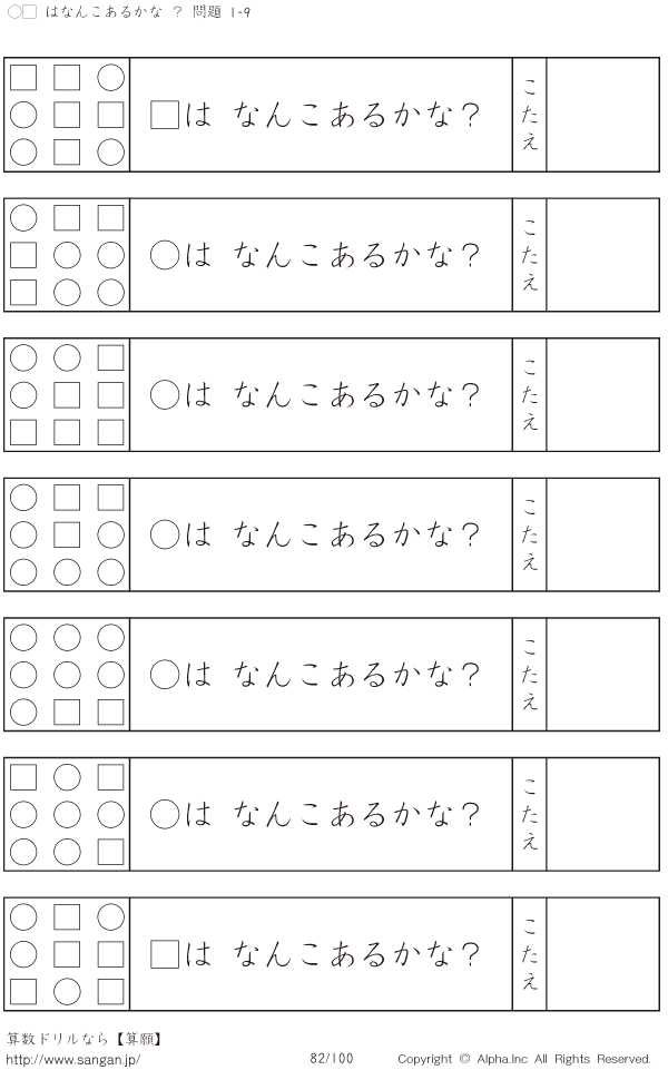 ○□はなんこかな?1-9-[プリント一覧] [問題]082/100