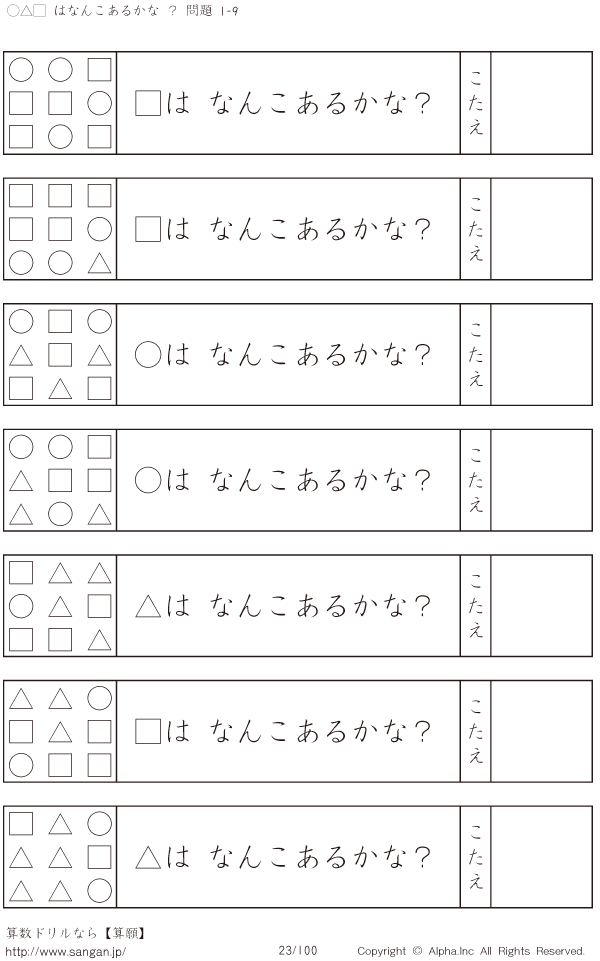 ○△□はなんこかな?1-9-[プリント一覧] [問題]023/100