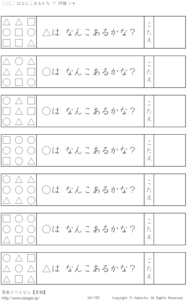 ○△□はなんこかな?1-9-[プリント一覧] [問題]046/100