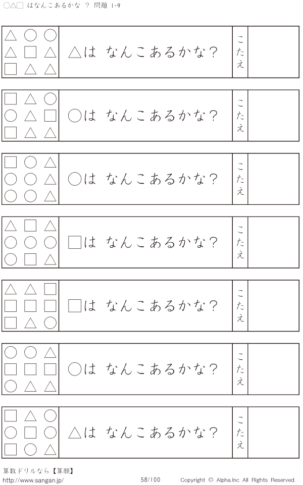○△□はなんこかな?1-9-[プリント一覧] [問題]058/100