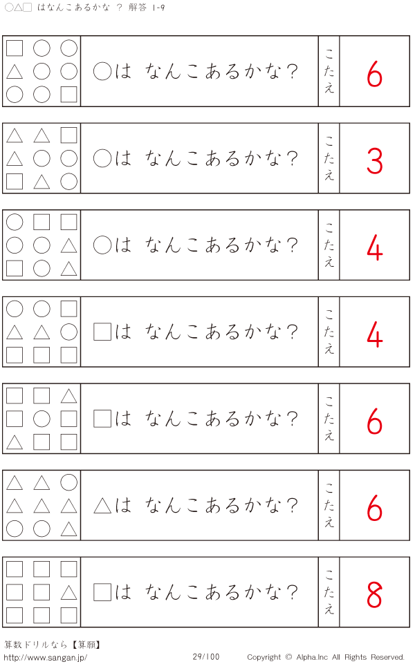 ○△□はなんこかな?1-9-[プリント一覧] [解答]029/100
