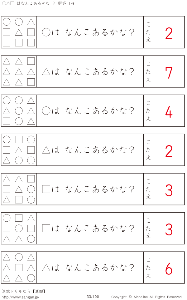 ○△□はなんこかな?1-9-[プリント一覧] [解答]033/100