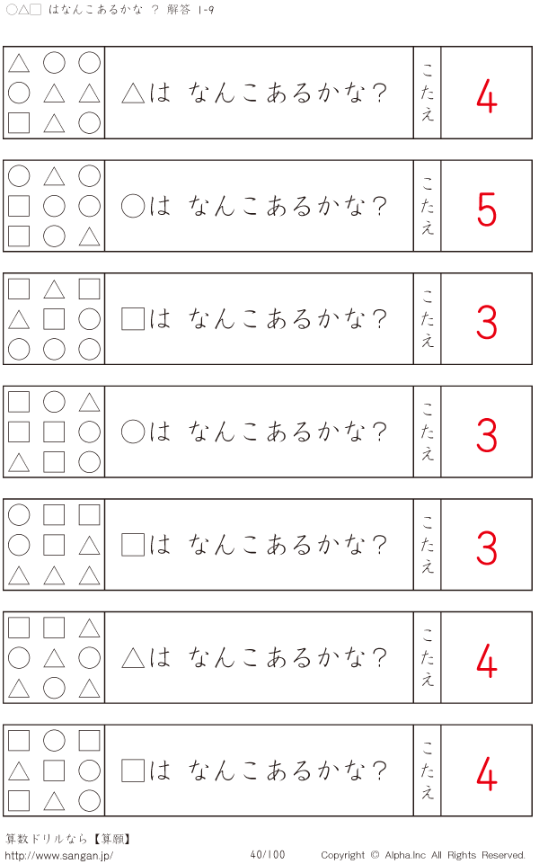 ○△□はなんこかな?1-9-[プリント一覧] [解答]040/100