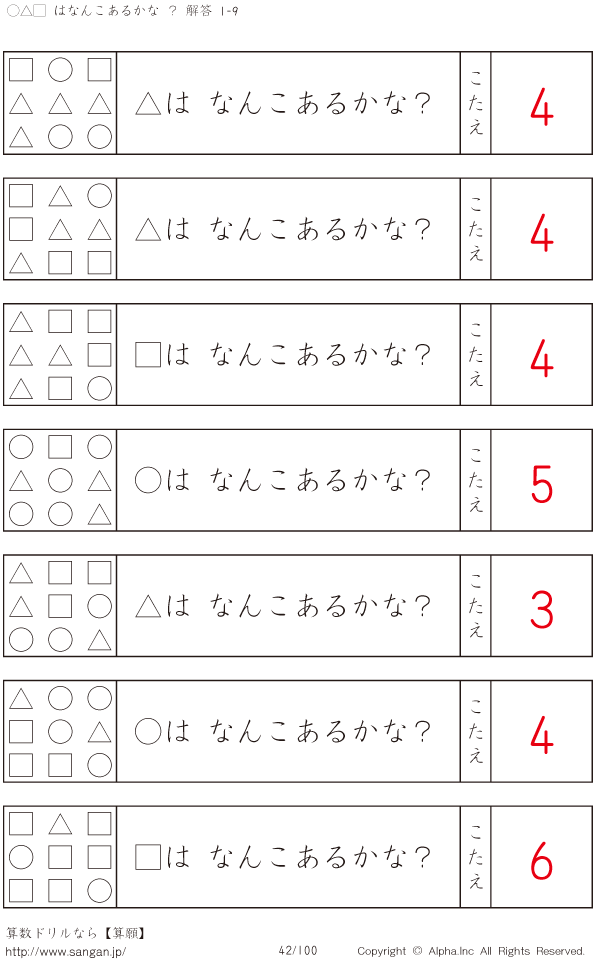 ○△□はなんこかな?1-9-[プリント一覧] [解答]042/100