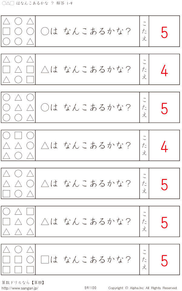 ○△□はなんこかな?1-9-[プリント一覧] [解答]059/100