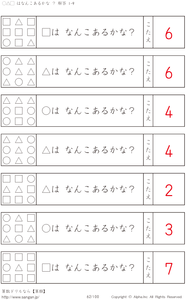 ○△□はなんこかな?1-9-[プリント一覧] [解答]062/100