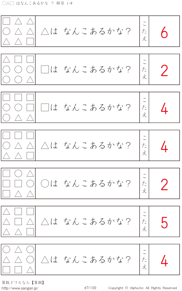 ○△□はなんこかな?1-9-[プリント一覧] [解答]067/100