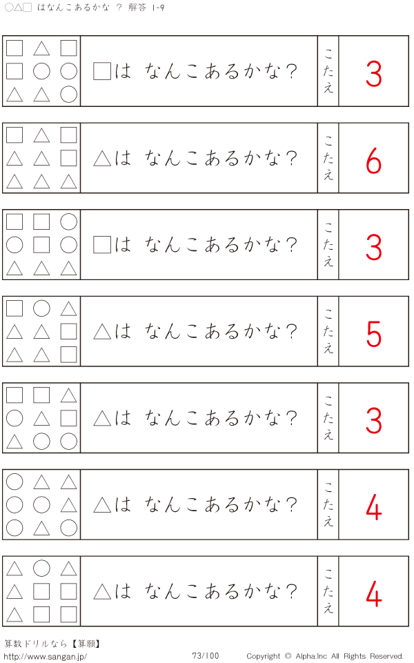 ○△□はなんこかな?1-9-[プリント一覧] [解答]073/100
