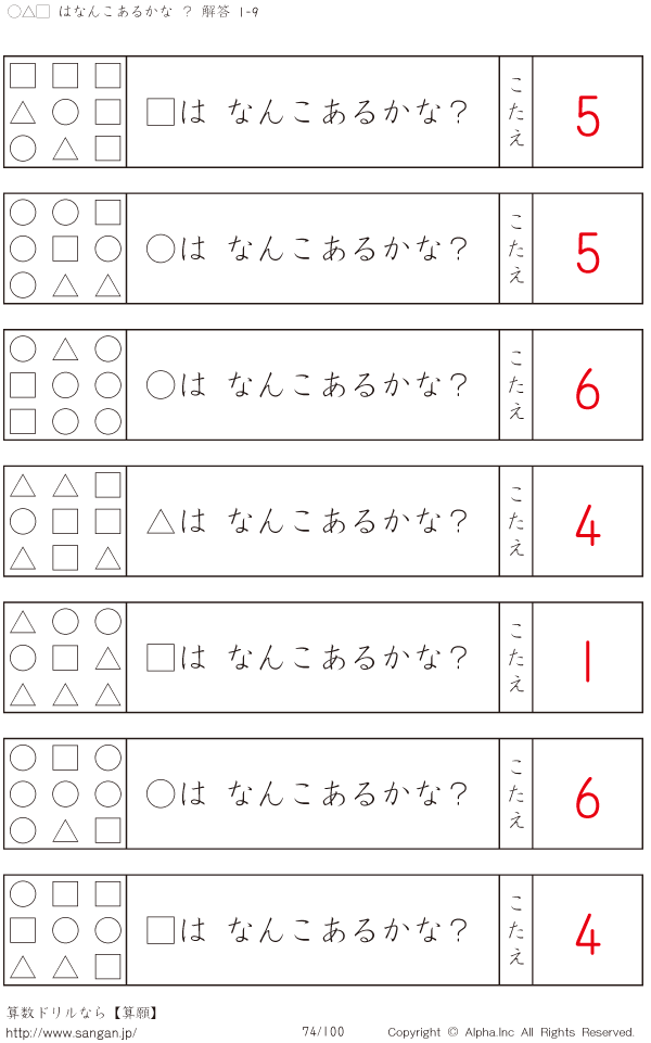○△□はなんこかな?1-9-[プリント一覧] [解答]074/100