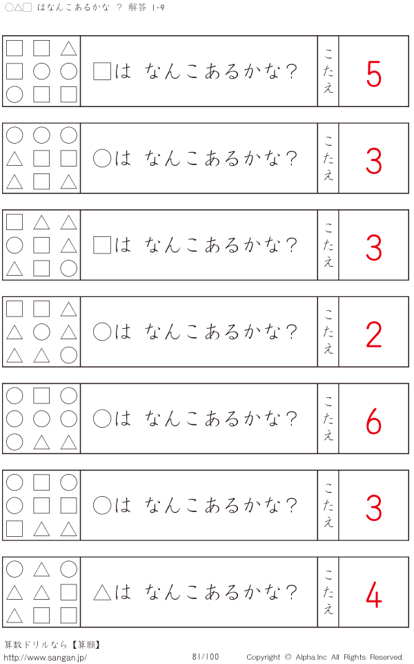 ○△□はなんこかな?1-9-[プリント一覧] [解答]081/100