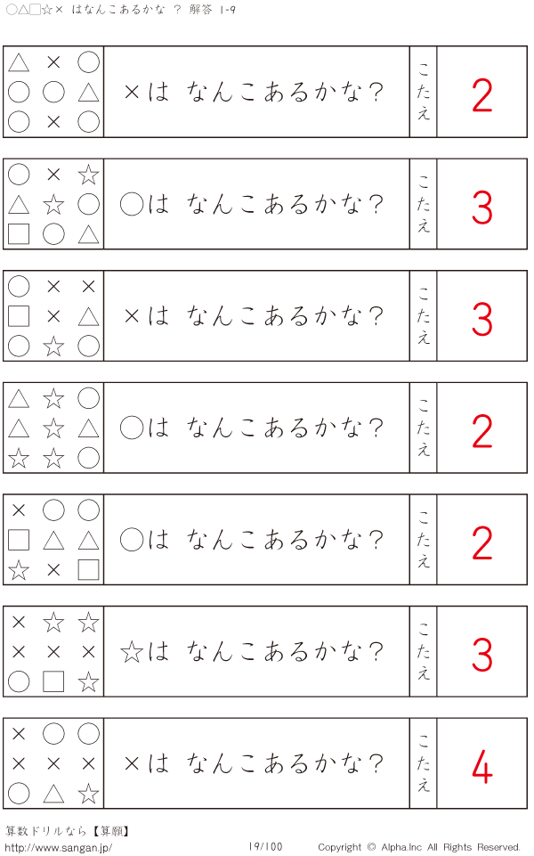 ○△□×☆はなんこかな?1-9-[プリント一覧] [解答]019/100