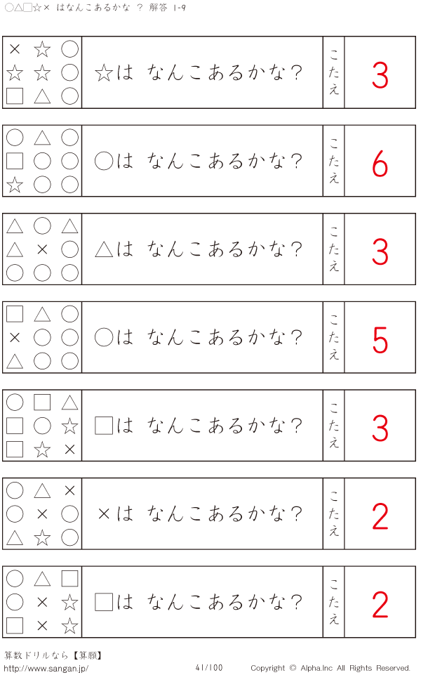 ○△□×☆はなんこかな?1-9-[プリント一覧] [解答]041/100