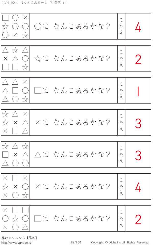 ○△□×☆はなんこかな?1-9-[プリント一覧] [解答]082/100