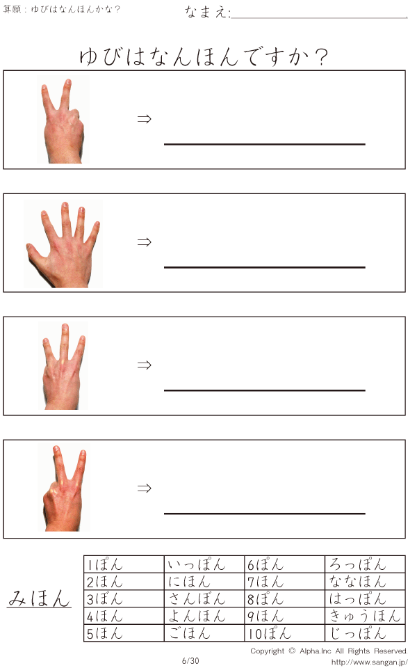 ゆびはなんほんかな?(片手-数字を書く)の問題解答ガイド