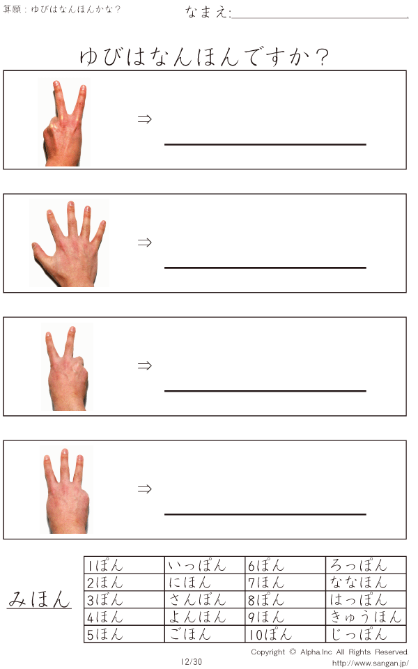 ゆびはなんほんかな?(片手-数字を書く)の問題解答ガイド