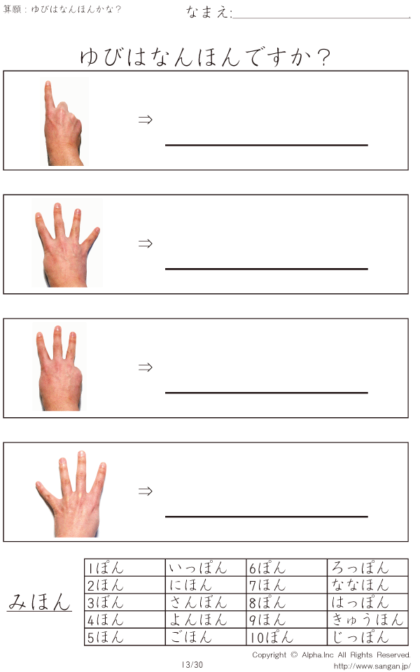ゆびはなんほんかな?(片手-数字を書く) [問題]013/030