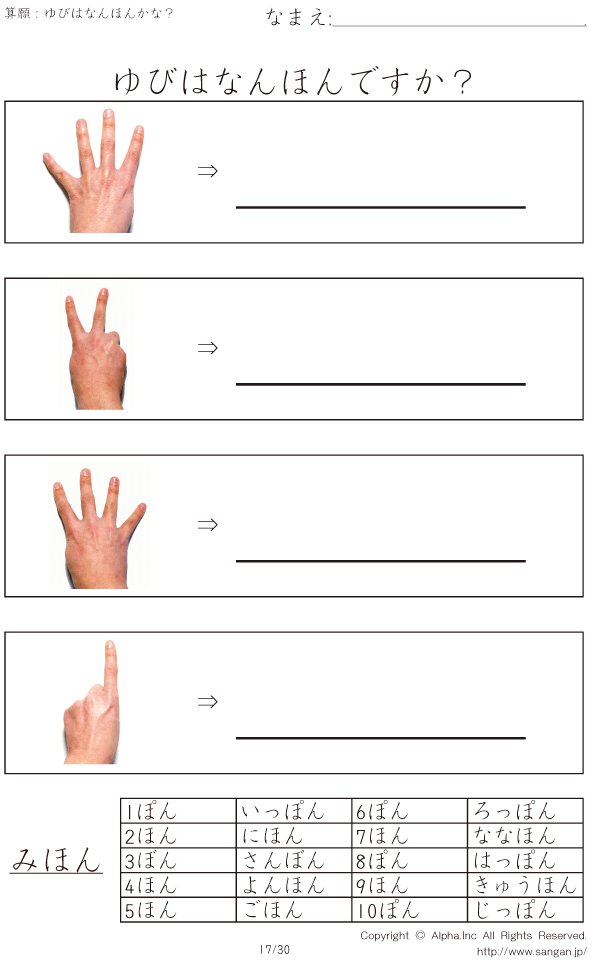 ゆびはなんほんかな?(片手-数字を書く)の問題解答ガイド