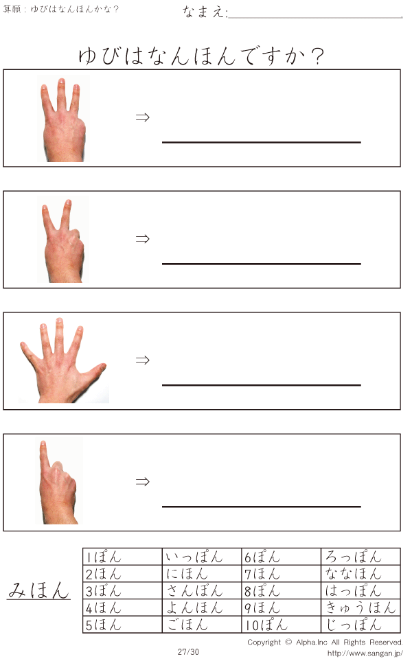 ゆびはなんほんかな?(片手-数字を書く)の問題解答ガイド
