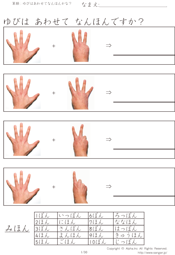 ゆびはなんほんかな?(左手は5で固定) [問題]001/030