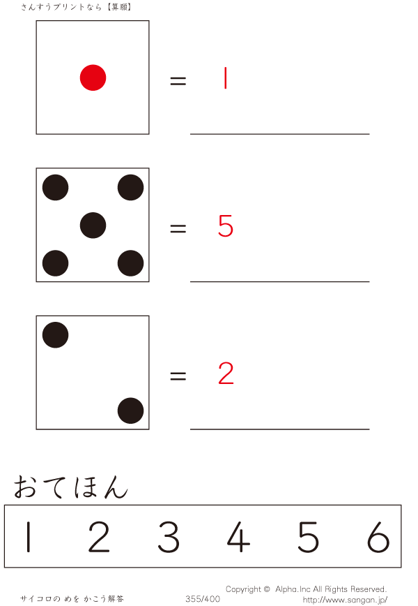 サイコロのめをかぞえよう [解答]355/400