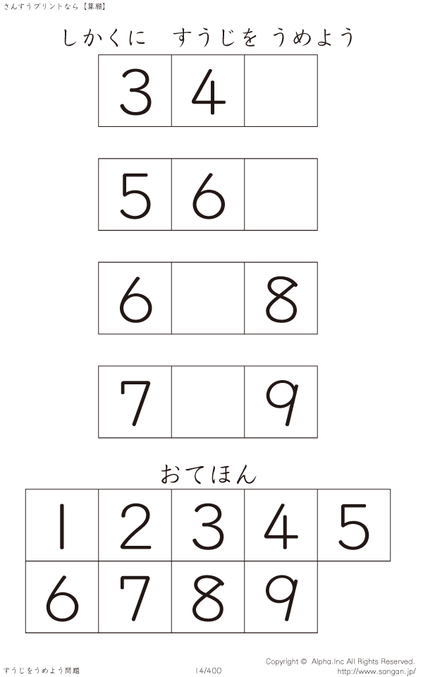 しかくにすうじをうめよう [問題]014/400