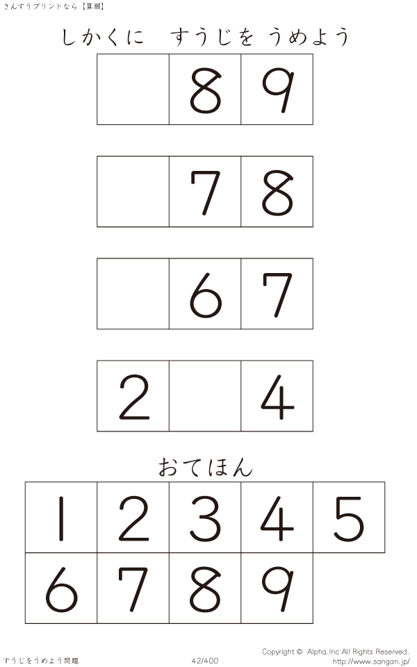 しかくにすうじをうめよう [問題]042/400