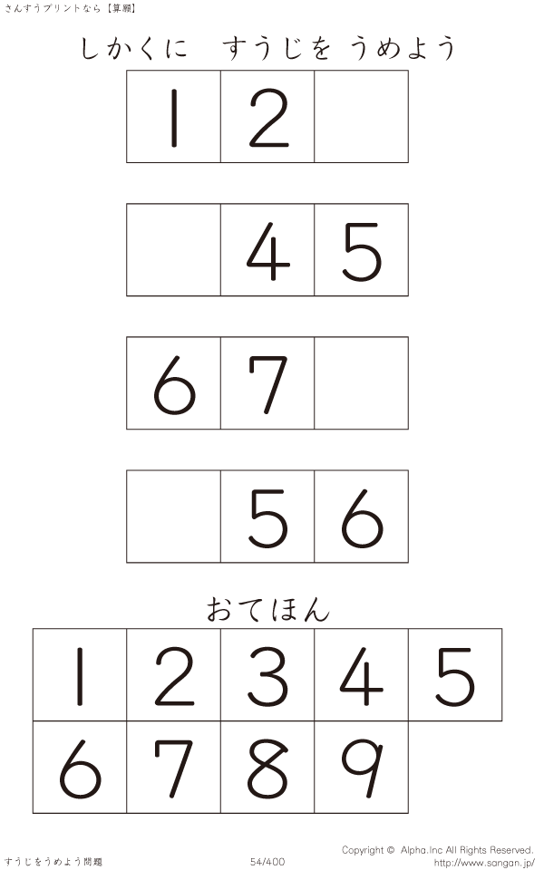 しかくにすうじをうめよう [問題]054/400