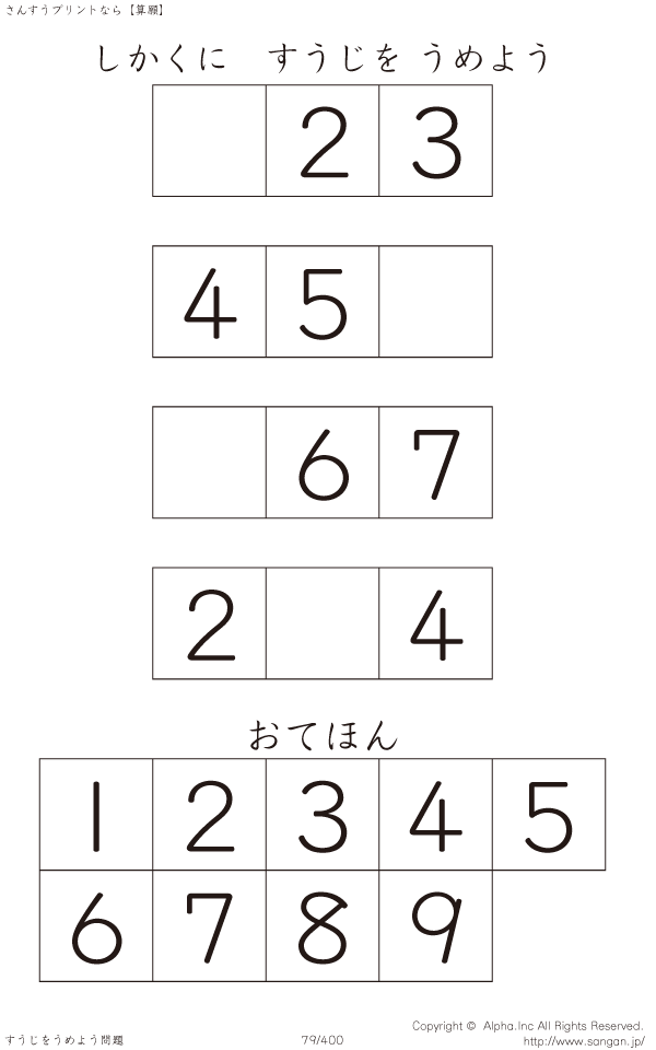 しかくにすうじをうめよう [問題]079/400